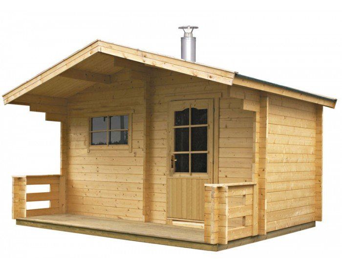 Il s’agissait d’une construction faite de rondins de bois dans laquelle se trouvait le foyer. Ce dernier était soit fermé et équipé d’un conduit de cheminée soir ouvert pour le "smoke sauna" ou ''sauna noir''.