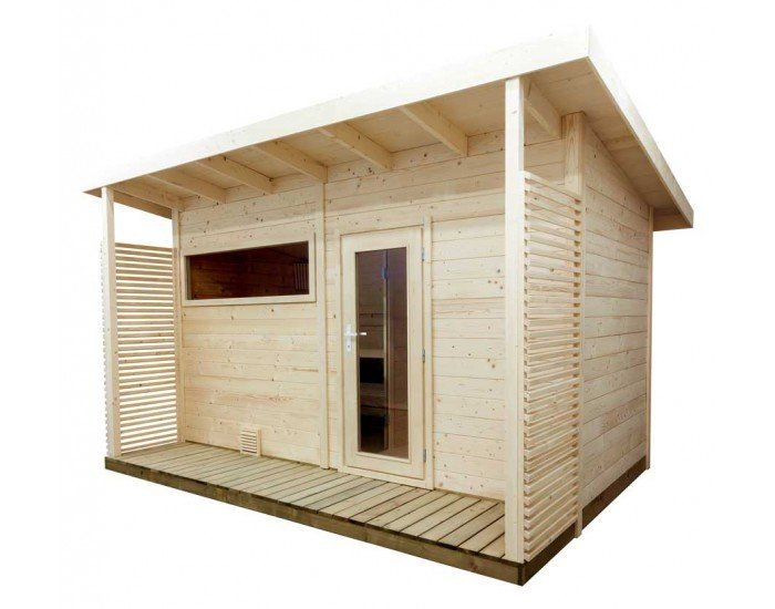 Le sauna contemporain à toit plat ou incliné et sa version plus classique à 2 pans peut très facilement être équipé de fenêtre en plus de la porte partiellement ou totalement en verre.